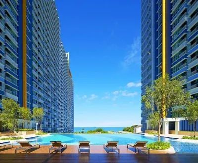 Lumpini Park Beach Jomtien – A tranquil, high-rise condominium in Na Jomtien, just steps from Jomtien Beach. Comprising three 30-storey towers with 1–3 bedroom units, rentals start from as low as ฿6,500 per month, making it one of the most affordable beachfront residences in the area. Ideal for those seeking a quiet, peaceful escape away from the city’s noise, the project features a swimming pool, gym, sauna, kids’ playground, library, gardens, and 24-hour security — all with direct beach access.